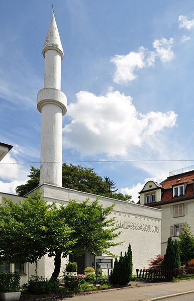 Minarett der Mahmud Moschee, Zürich. Bild: Wikimedia