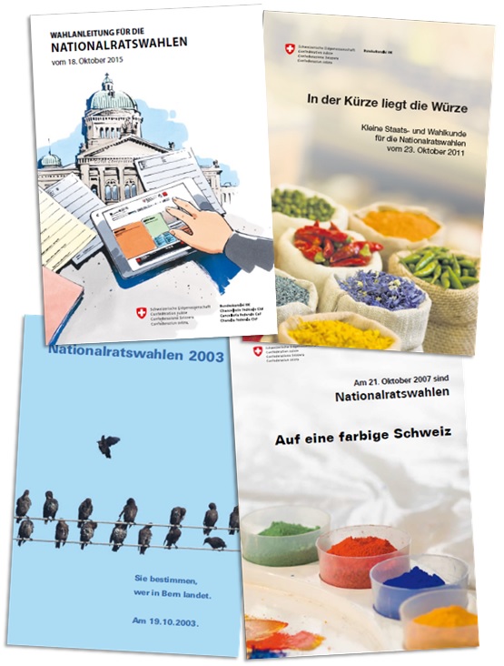 Dieser Tage finden sich in hiesigen Briefkästen nicht nur Prospekte der Herbst- und Winterkollektionen, sondern auch eine Ausgabe der Wahlanleitung zu den Nationalratswahlen vom 18. Oktober. Wer die Broschüre durchblättert, die Erläuterungen übers Streichen, Kumulieren und Panaschieren aufgeschnappt hat (was in der Broschüre 2011 vergessen ging![1]), der schmöckert darin vielleicht auch in den Selbstporträts der politischen Parteien. Die SVP oder die Grünen buhlen darin um Wählerstimmen, gleich wie die EVP und die Lega dei Ticinesi.